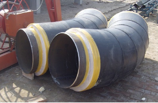 3)所有弯头弯管煨制时应预留直管段,不允许焊接延长,采用CANUSA热收缩带防腐,效果与直管相同。