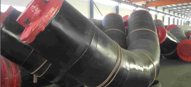 钢套钢直埋保温弯头设计的弯曲半径一般为不小于工作弯头公称通径的3倍,也可根据外套弯头自行设计。如273/530的保温弯头,530采用正常的1.5倍弯曲半径为750,工作弯头即可采用3倍273弯管,尽量使两弯头中心距一致,但要注意的是工作弯头一定要长于外套弯头,以利于焊接。